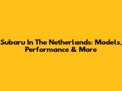 Subaru In The Netherlands: Models, Performance & More