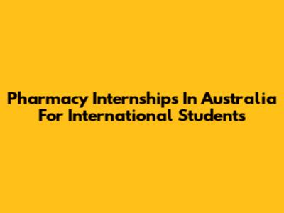 Pharmacy Internships In Australia For International Students