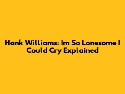 Hank Williams: "I'm So Lonesome I Could Cry" Explained
