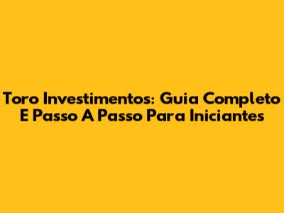 Toro Investimentos: Guia Completo E Passo A Passo Para Iniciantes