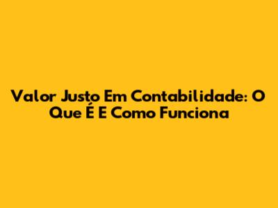 Valor Justo Em Contabilidade: O Que É E Como Funciona