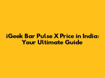 IGeek Bar Pulse X Price In India: Your Ultimate Guide