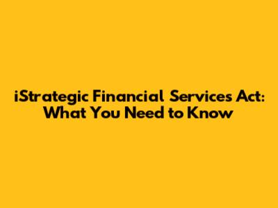 Hey guys! Ever heard of the iStrategic Financial Services Act? If not, no worries! This article is all about breaking down what this act is, why it matters, and how it might affect you. Let's dive in!