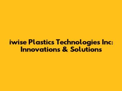 Hey guys! Ever heard of iwise Plastics Technologies Inc? If you're even remotely involved in, or simply curious about, the world of plastics and cutting-edge technology, then buckle up! We're diving deep into what makes iwise a significant player in the industry, exploring their innovations, solutions, and overall impact. So, grab your favorite beverage, get comfy, and let's explore the fascinating world of iwise Plastics Technologies Inc.