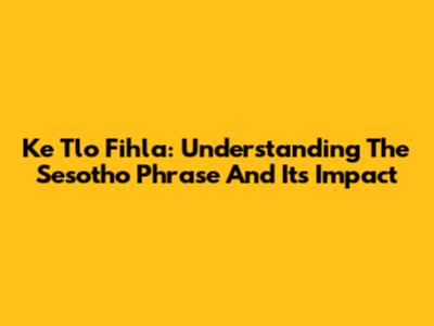 Ke Tlo Fihla: Understanding The Sesotho Phrase And Its Impact