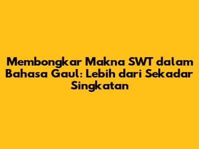 Evolusi penggunaan SWT dalam bahasa gaul juga mencerminkan perubahan cara pandang anak muda terhadap agama. Mereka cenderung lebih terbuka dan inklusif dalam mengekspresikan keyakinan mereka. Penggunaan SWT dalam bahasa gaul menjadi salah satu cara untuk menunjukkan bahwa mereka bangga menjadi Muslim, tanpa harus merasa kaku atau ketinggalan zaman. Namun, penting untuk diingat bahwa penggunaan SWT dalam bahasa gaul tidak selalu diterima dengan baik oleh semua orang. Ada sebagian orang yang menganggap penggunaan singkatan ini kurang sopan atau bahkan terkesan merendahkan makna asli dari SWT. Oleh karena itu, bijaklah dalam menggunakan SWT dan selalu perhatikan konteks serta lawan bicara.