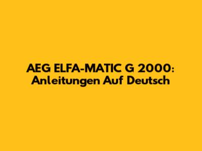 AEG ELFA-MATIC G 2000: Anleitungen Auf Deutsch