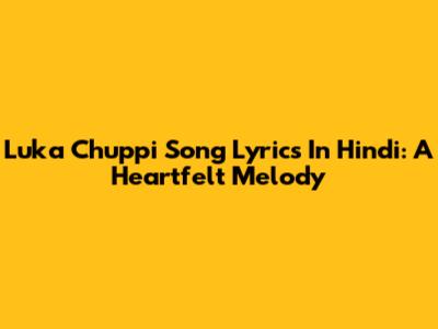 Luka Chuppi Song Lyrics In Hindi: A Heartfelt Melody