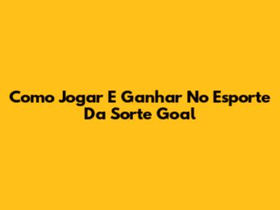 Como Jogar E Ganhar No Esporte Da Sorte Goal