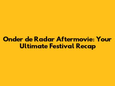 "title": "Onder de Radar Aftermovie: Your Ultimate Festival Recap",