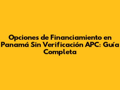 Opciones De Financiamiento En Panamá Sin Verificación APC