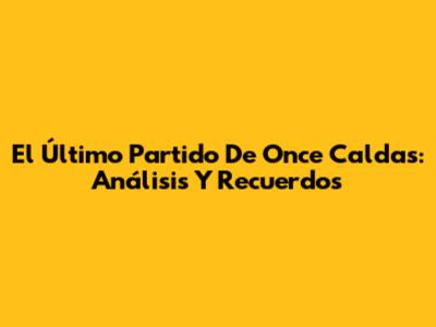 El Último Partido De Once Caldas: Análisis Y Recuerdos