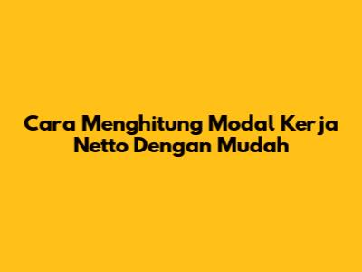 Cara Menghitung Modal Kerja Netto Dengan Mudah