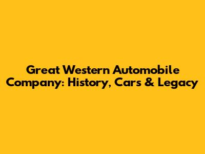 Great Western Automobile Company: History, Cars & Legacy