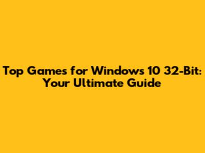 Top Games For Windows 10 32-Bit: Your Ultimate Guide