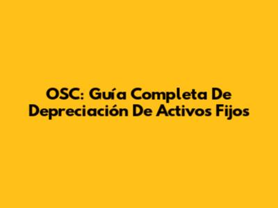 OSC: Guía Completa De Depreciación De Activos Fijos