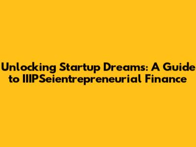 Understanding the Basics of IIIPSeientrepreneurial Finance