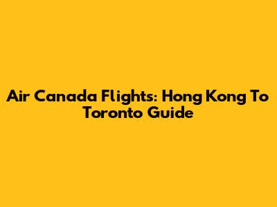 Air Canada Flights: Hong Kong To Toronto Guide