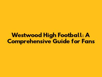 Westwood High Football: A Comprehensive Guide For Fans