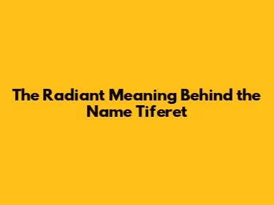 The Radiant Meaning Behind the Name Tiferet
