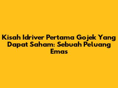 Kisah Idriver Pertama Gojek Yang Dapat Saham: Sebuah Peluang Emas